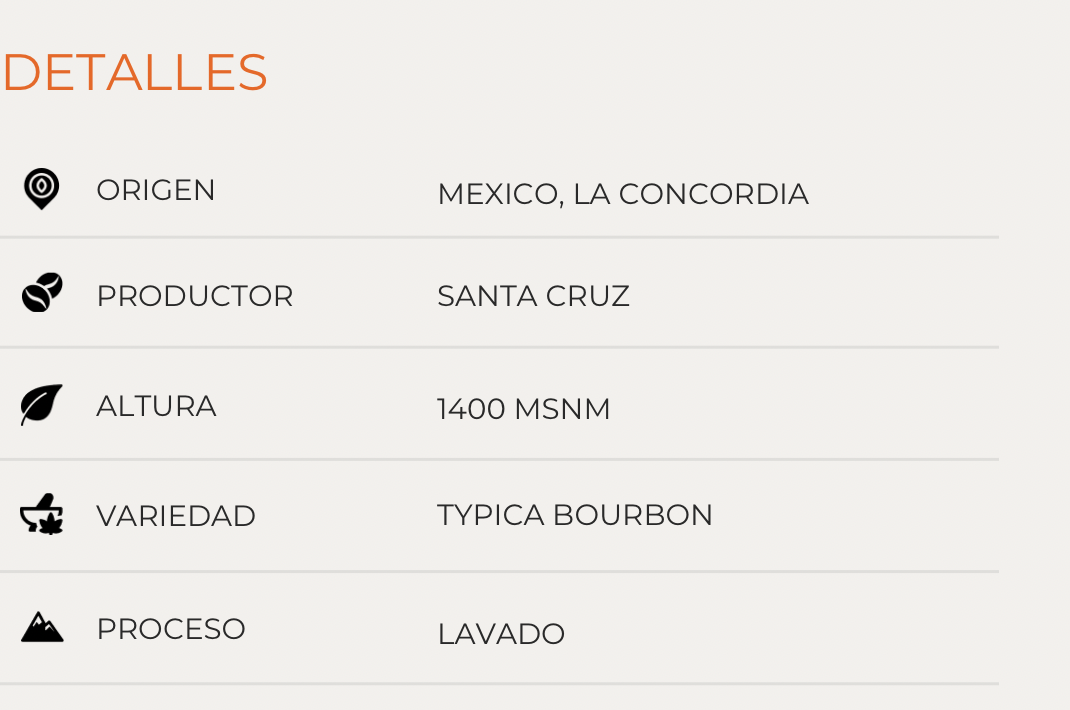 Esta cafe en particular, producido por el caficultor Jose Arguello en Finca Santa Cruz, region de La Concordia, Chiapas, Mexico.